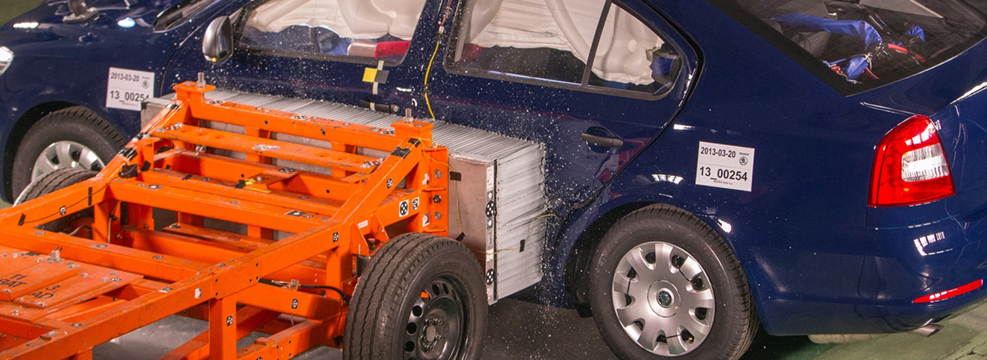 b-sloupek (rám mezi předními a zadními dveřmi) v rychlosti 30 km/h. Tento typ nárazu je velmi běžný a zdraví posádky závisí z největší části na funkci speciálních výztuh z vysokopevnostní oceli umístěných ve dveřích a v postranicích vozu. Po této simulované nehodě byly vozy opraveny dvěma různými způsoby. Integrovaný autorizovaný servis Škoda opravoval přesně podle aktuálních pokynů výrobce. Dceřinná laboratoř společnosti Dekra, KTi, opravovala podle zastaralého nízkonákladového způsobu. Při opravě způsobem v rozporu s předpisy výrobce byly poškozené díly vyrovnávány, na místo aby byly nahrazeny novými.
